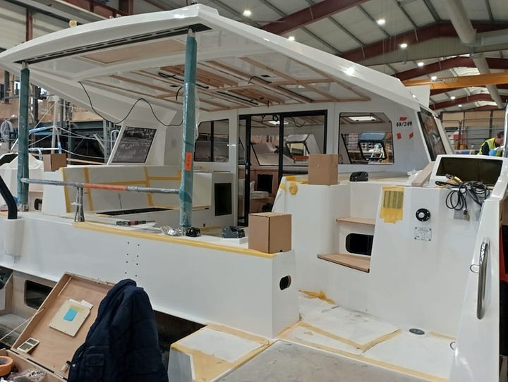 While we heard stories of other shipyards communicating extreme long delays, even up to 3-4 months, we were told Nautitech would still be delivering on schedule. Unfortunately supply line and personnel issues, combined with shifting priorities on the production line means Howdoo is planned to “splash” 6 weeks later. We now looking at mid April for the handover.