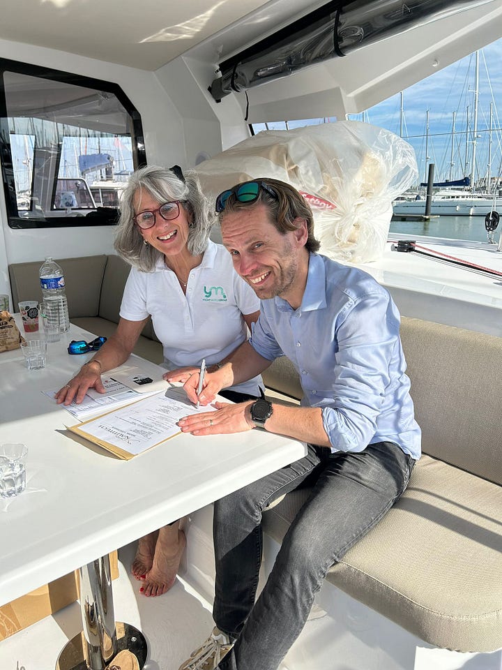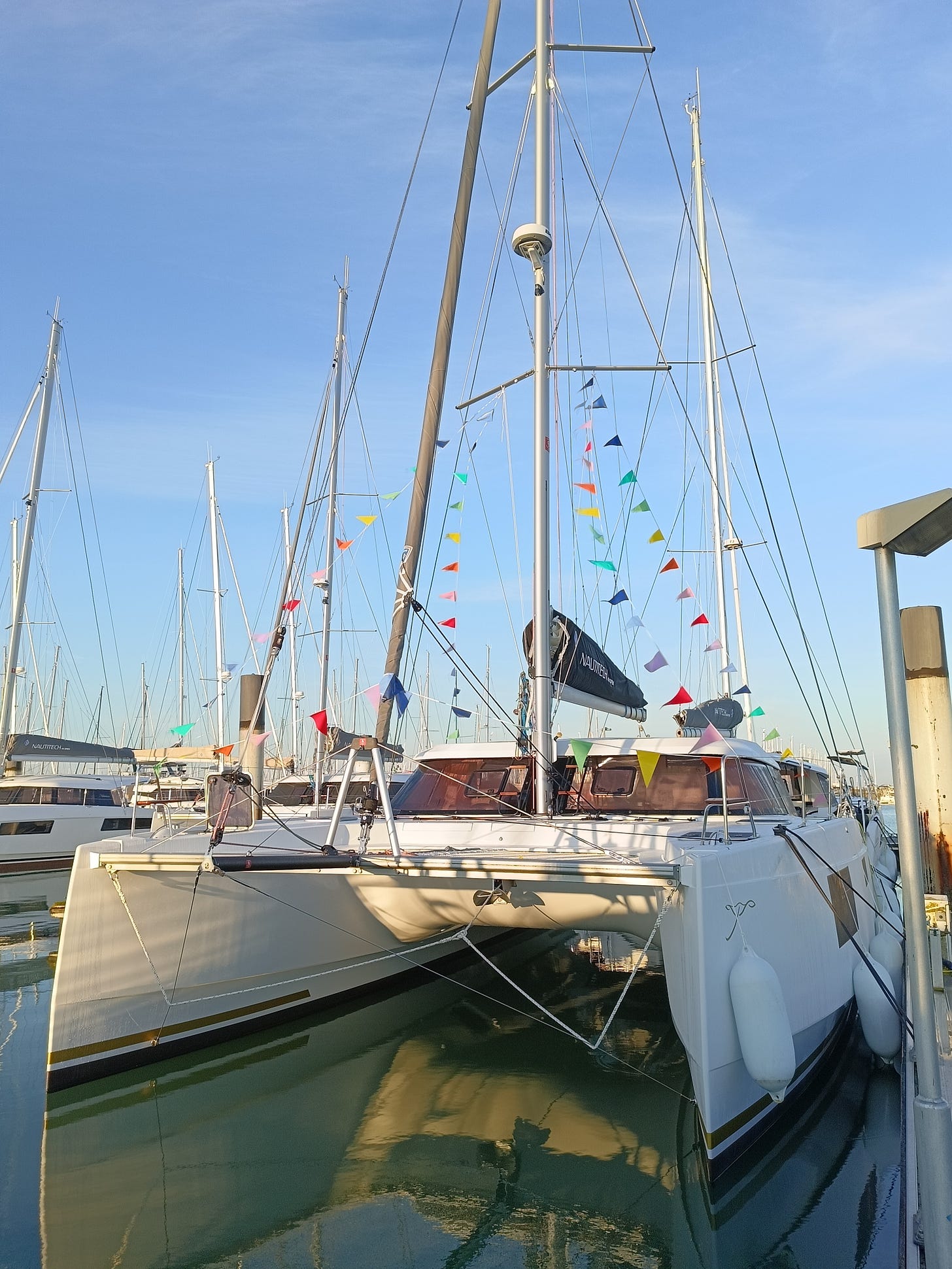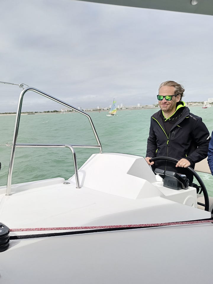 Monday morning we were greeted by the super enthousiastic Pierre to do the technical briefing. Opening every hatch and explaining everything we need to know. As it’s a RELATIVELY simple boat we were done around lunchtime. In the meantime the “gelcoat-doctor” did his job and we were able to practice some manoeuvres with the engines, and take her to sea, and boy does she like the salt water breeze! It was a delight to sail her while pinching myself to be leave this is MY boat!