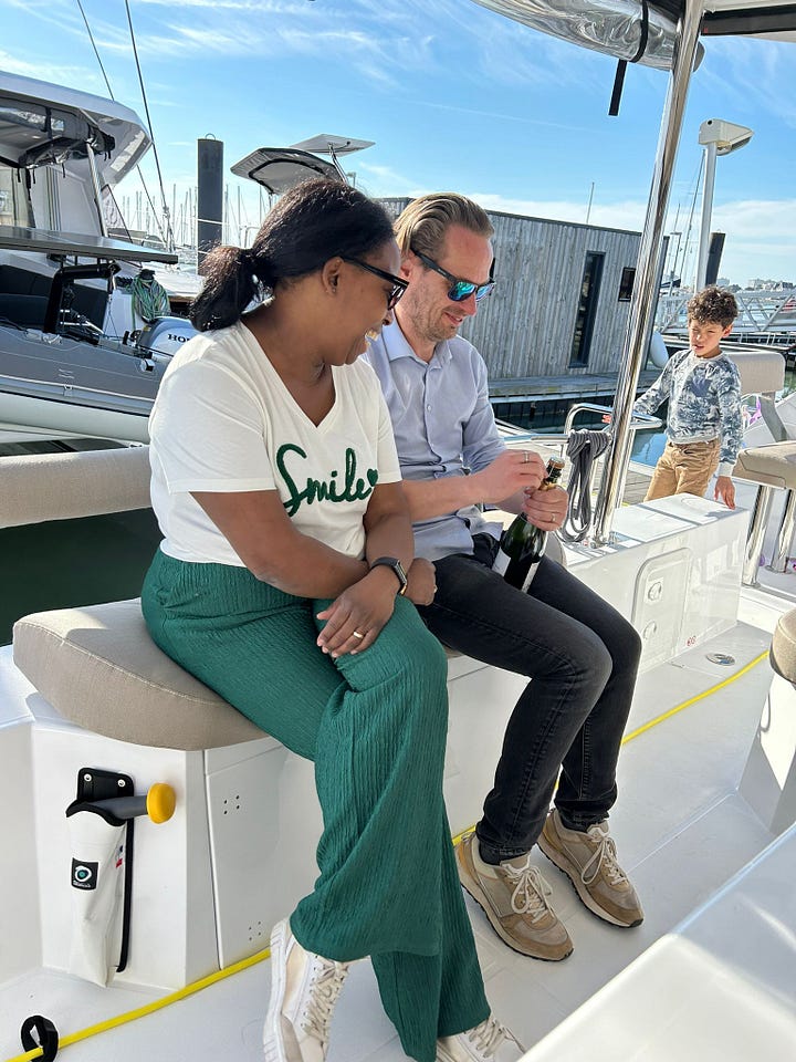 Tuesday was planned for the official seatrail, but as the weather wasn't any calmer and she needed to drive all the way back Eus decided to step off with the kids. After saying goodbye, I was a bit sad… We've never been apart for more than a week. Luckily we had a nice seatrail with Pierre, my skipper and I to look forward to. And again the boat didn't let us down, we sailed across the bay of la Rochelle (passing the famous fort boyard) and tried out the black gennaker. And again a lot of joehoe-ing, but not just from Pierre. Even the skipper was impressed and quickly updated the invitation for trainees (to join for the second leg to Croatia), making clear that this is not a caravan catamaran!